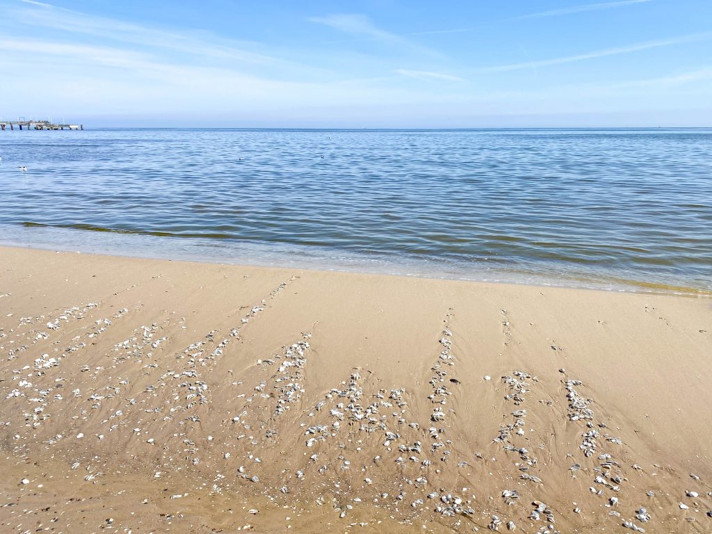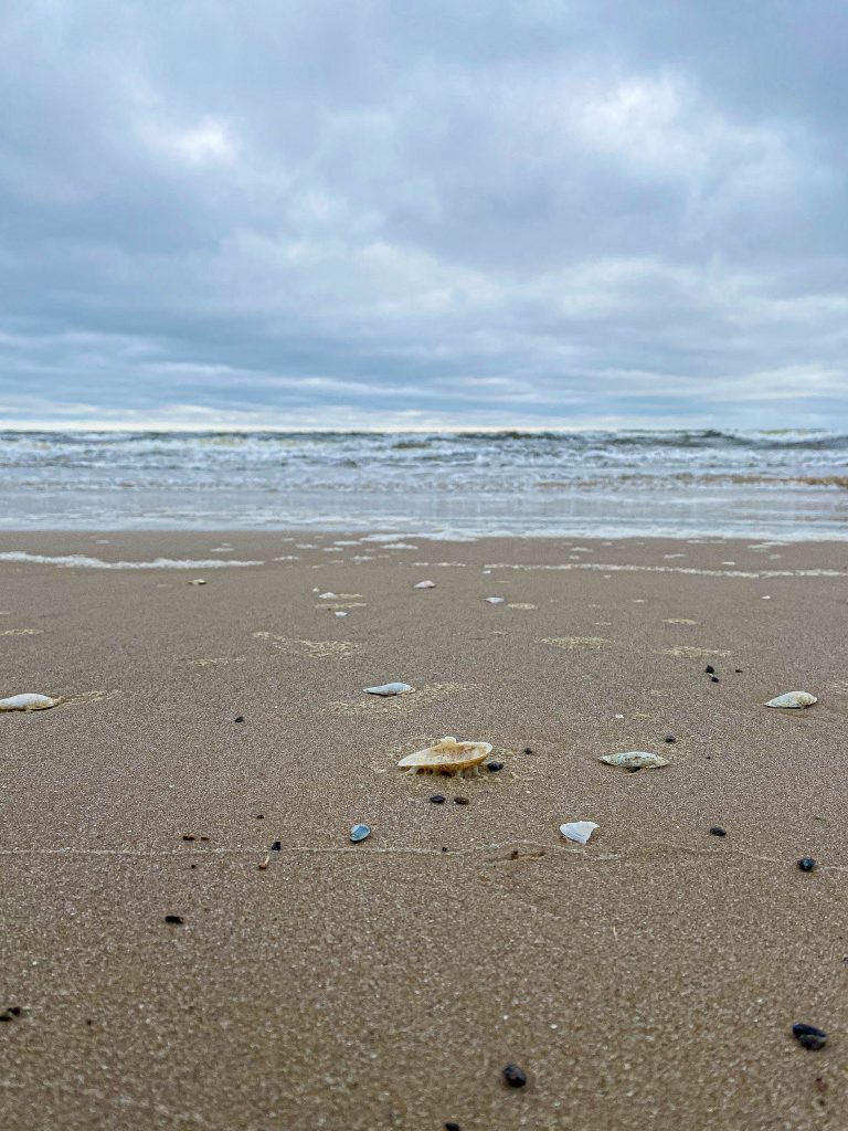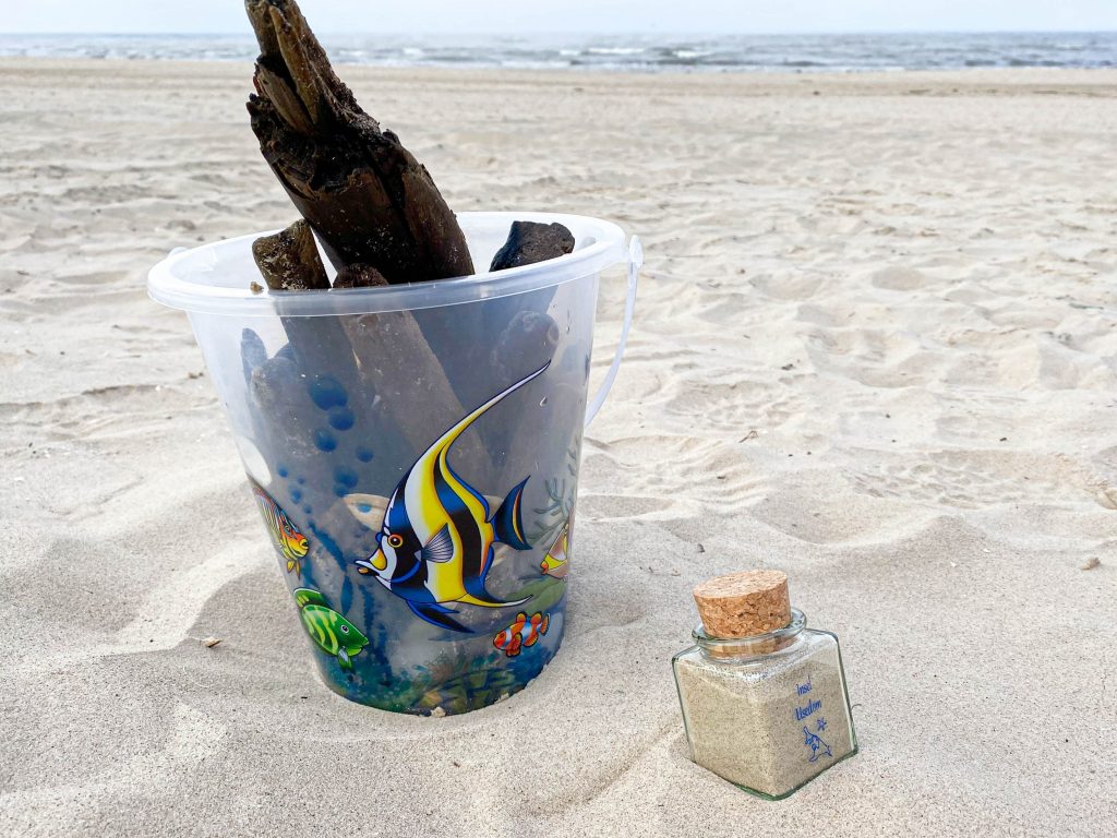 Den Nachmittag verbrachten wir bei einem langen Spaziergang am Strand. Natürlich musste ich mir erst einmal einen Eimer für Muscheln und Strandgut und einkleines Fläschchen für den Sand kaufen. (Sand/ Kies oder Erde nehme ich von jedem Urlaubsort mit) Da noch keine Saison ist, sind nur wenige Menschen am Strand. Wir genossen die Ruhe und den weiten ungestörten Blick in die Ferne.