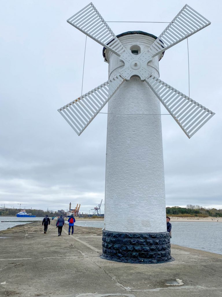Das Navigationszeichen in Form einer Windmühle gehalten, ist das Wahrzeichen der Stadt Swinemünde. Von der Mole aus hat man einen herrlichen Blick auf die einfahrenden Schiffe und man läßt sich den Seewind um die Nase wehen. Nehmt euch ein wenig Zeit, setzt euch einfach mal hin und laßt den Blick schweifen.