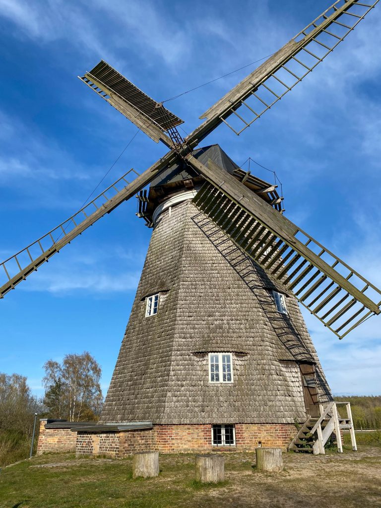 Von Nepperin aus folgten wir erneut dem Feininger Radweg Richtung Benz, wo wir an der Holländermühle noch eine kurze Rast einlegten. Die Holländerwindmühle auf dem Mühlenberg von Benz wurde 1863 erbaut und verrichtete mit Hilfe des Windes ihren Dienst. Später dann auch mit Strom, der das Mahlen unabhängig vom Wind machte. 1972 wurde der Betrieb geschlossen.