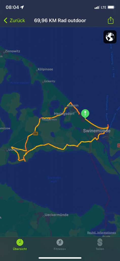 Als ich Kind war, verbrachten wir mit unseren Eltern die Sommerferien immer an der Ostsee, aber tatsächlich war ich noch nie auf Usedom. Da wir ohne Kinder unterwegs sein würden, beschlossen wir nicht mit der Familienkutsche, sondern mit dem Kastenwagen zu fahren. Die Fahrräder hinten rein und dann ging es am letzten Sonntag im April 2022 bei strahlendem Sonnenschein los.