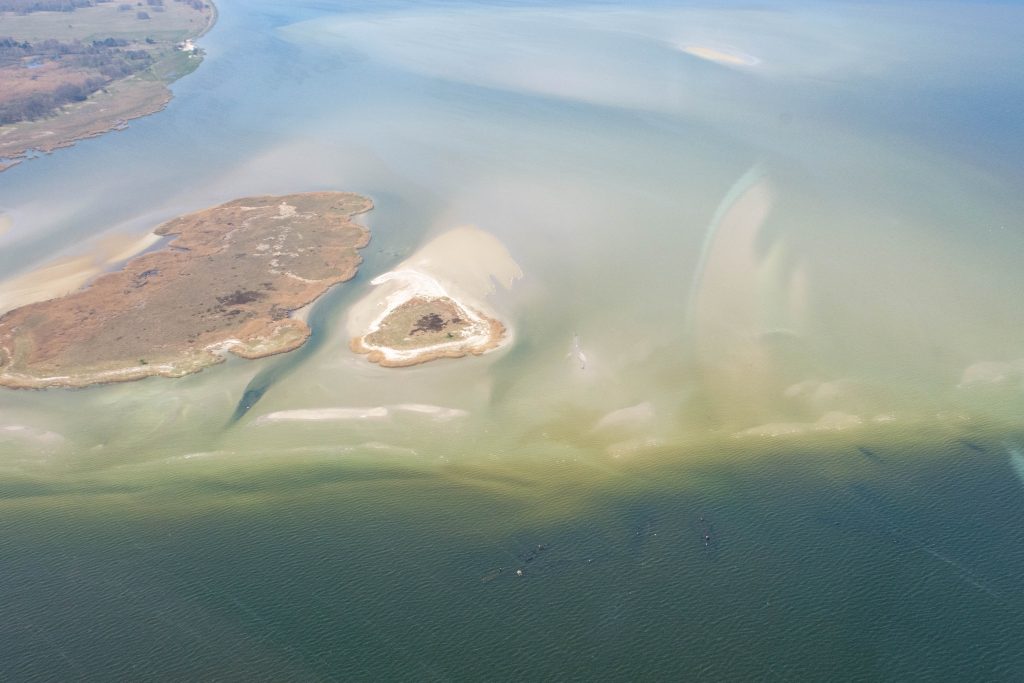 Herr Landau, oder auch Rolf, erwies sich als äußerst kompetenter Reiseleiter. Vom Start bis zur Landung erzählte er von dem, was sich gerade unter uns, rechts oder links in Sichtweite befand. Wenn man kein Tonband dabei hat, fällt es schwer alles zu behalten. Von kleinen Inseln, auf der ein Hotel mit 700 Betten gebaut werden sollte, was Gott sei Dank verhindert wurde, bis zur Geschichte der Stadt Peenemünde. Vom Leben auf der Insel mit seinen Vor- und Nachteilen, von Überalterung der Bevölkerung und der Überlastung der wenigen Straßen. All diese Sachen kamen in den 30 Minuten zur Sprache. Aber auch über das Sperrgebiet am nördlichsten Rand der Sonneninsel Usedom wußte Rolf einige Geschichten zu erzählen.