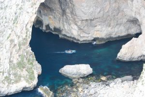 Weiter in Richtung Osten begeisterte uns der Blick auf die unter uns liegende „Blue Grotto“. Da sich bei unserer Tour die Sonne nicht blicken ließ, können wir das angeblich kobaltblaue Wasser nur erahnen. Hierzu soll man möglichst früh vom Fischerdorf Wied iz-Zurrieg aus, in einem der Fischerboote sitzen und eine Rundfahrt durch die Höhlen machen.