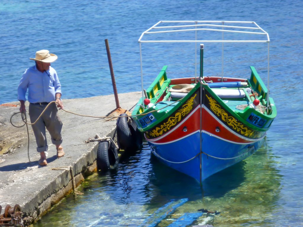 Den Abschluss unserer Malta Safari bildete das größte Fischerdorf der Insel, Marsaxlokk. Täglich wird hier Markt gehalten, welcher sonntags jedoch am größten ist. Zu kaufen gibt es Obst, Gemüse, Haushaltswaren, Süßigkeiten, Alkohol und für Liebhaber, Spitzen. Besonders reizvoll ist jedoch der Hafen. Die traditionell maltesisch buntbemalten Luzzus mit den an beiden Bugwänden geschnitzten Osiris-Auge, ein Glücksamulett, sind niedlich anzusehen. Es ist kaum zu glauben, dass diese relativ kleinen Boote tatsächlich für die Fischerei genutzt werden. Es ist schade, dass die sich in unmittelbarer Nähe des Hafens befindliche Pfarrkirche „Our Lady of Pompeji“ in den Reiseführern unerwähnt bleibt. Sie ist wirklich sehenswert.